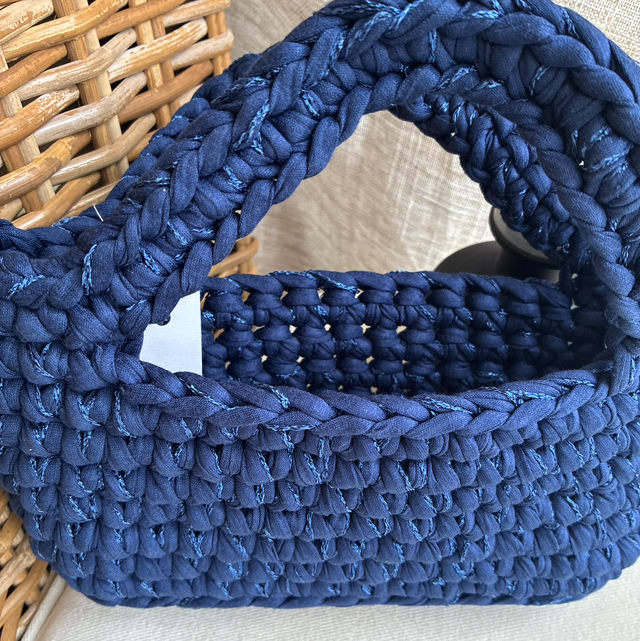 Sac en fil t-shirt bleu avec un fil de coton bleu pailleté